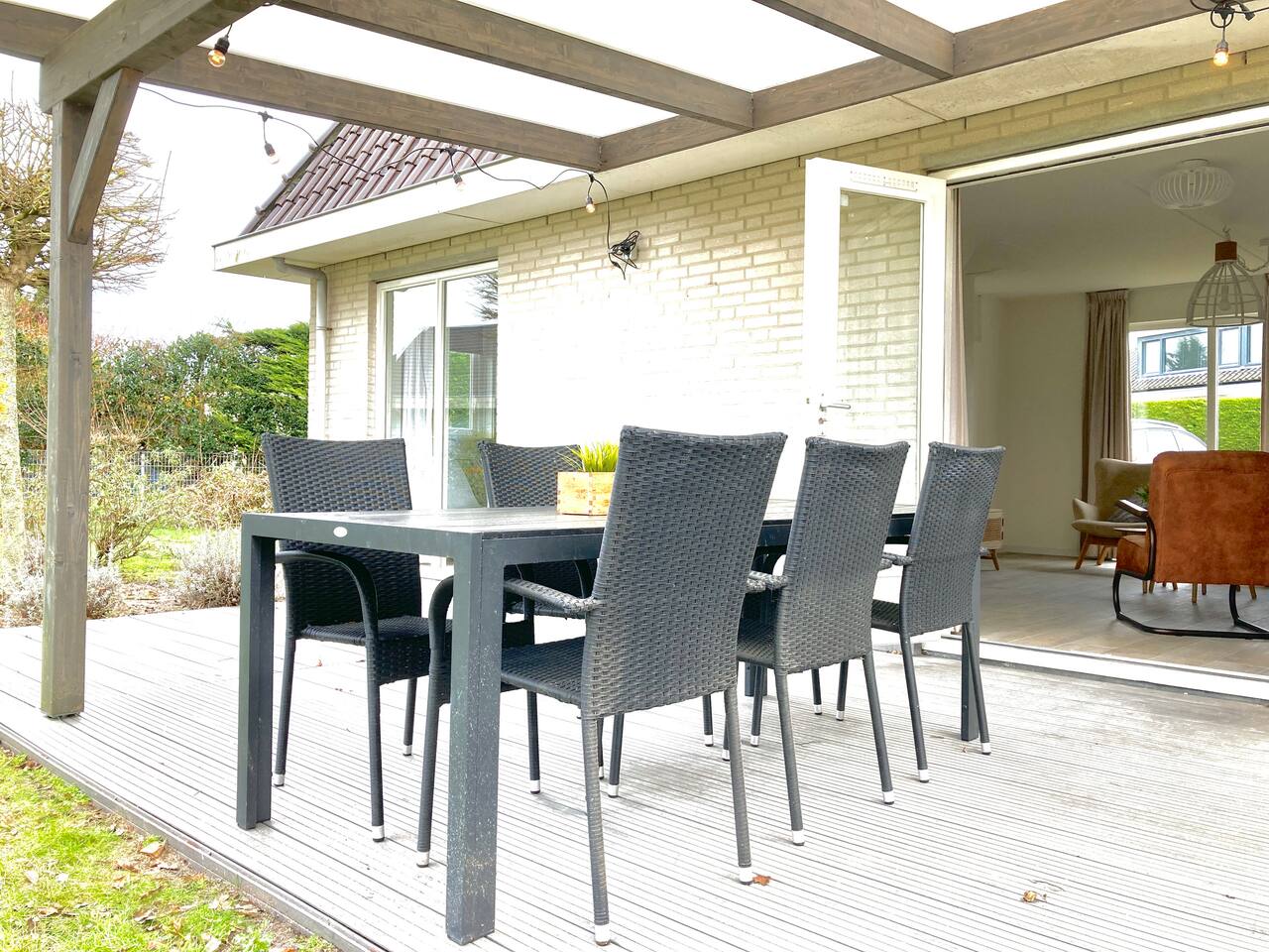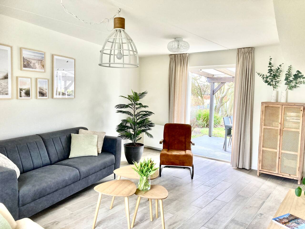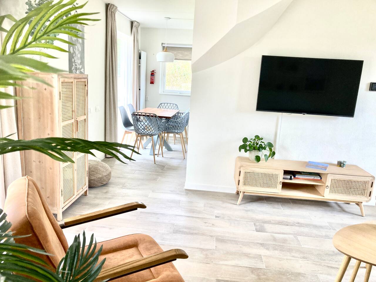 The house (semi-detached) was renovated in early 2023. The garden faces west with unobstructed views and is fenced off with a lockable gate. Eat outside, read a book in the hanging chair or sunbathe on the deck chairs. It's all possible. There is room for 2 cars. You can park your bicycles in the shed. The living room has doors opening onto the covered terrace. Upstairs are 3 bedrooms and a bathroom. It is located on holiday park de Witte Raaf, close to the beach, dunes and flower fields. The living room has a sofa and armchairs for 6 around the smart TV. There are some games and toys in the cupboard. The room has patio doors to the cosy lit veranda, from these patio doors you can walk onto the terrace, which faces west. The garden is 450m2 and is fully enclosed with a fence, which can also be locked. There is a shed for your bicycles. There are 2 deck chairs, a 2-seater hanging chair and dining table in the garden. There is an open kitchen with a dining area for 6 people. The kitchen has a nespresso machine, filter coffee maker, kettle, toaster, hand-blender, combi-oven with microwave function, fridge with small freezer, dishwasher and gas cooker. There is plenty of cutlery, crockery, glasses, pans, etc. In the hall is a separate toilet and a closet with washing machine. Upstairs are 3 bedrooms, all with box springs. There you will also find the bathroom with toilet, washbasin, mirror, hairdryer, walk-in shower, shower gel and shampoo. Beds are made on arrival and towels are provided for each guest. For our little guests, there is a camp bed (bring your own bed linen), highchair, stair gate, wagon and (beach) toys available.