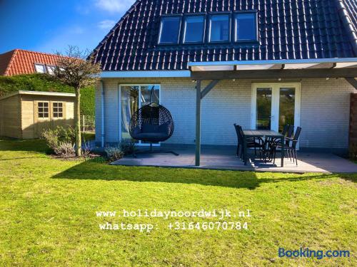 Our house is located near the dunes, beautiful beach, forests and flower fields of Noordwijk. It is located on holiday park de Witte Raaf, a spacious and green park about 2 kilometres north of the built-up area of Noordwijk. The park is secured with a barrier and there are 2 playgrounds for children. The dunes and forest are within 200 metres' walking distance. There are several restaurants and a playground within 300 metres' walking distance. The beach (exit 24) is 1.5 km away. This is about a 20-minute walk or 5-minute bike ride. It is a perfect base for a bike ride or walk. In spring, enjoy a lovely walk along the flower fields or towards Keukenhof. Many villages and towns are within cycling range. Even the start of an MTB trail is 500 metres away. Noordwijk aan Zee has a cosy Boulevard with many restaurants, coffee bars and trendy beach pavilions. Noordwijkerhout is also nearby and has a cosy centre with shops, restaurants and terraces around the white church.